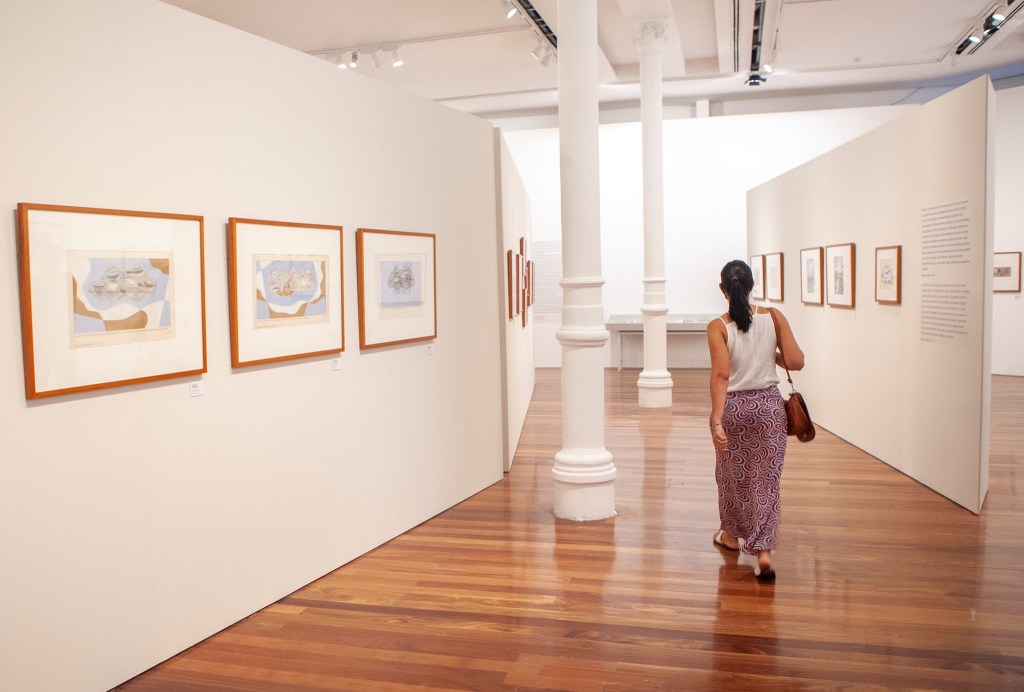 Ao reunir estudos preparatórios para painéis, executados em mosaico, ilustrações, objetos e alguns documentos históricos, a mostra agrega projetos por afinidades estéticas, revelando um variado repertório de composições figurativas, abstratas e geométricas.